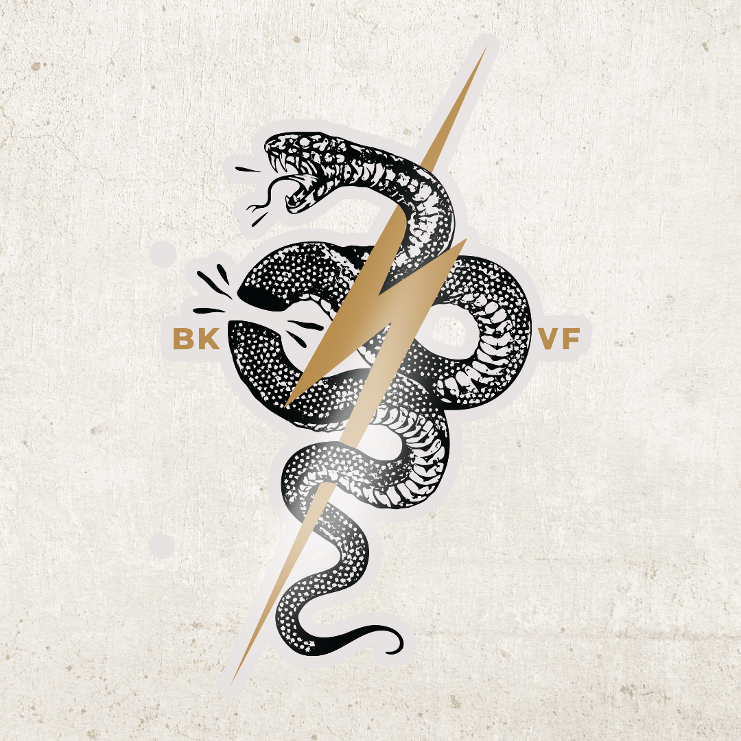 This 3.5" clear vinyl sticker features a bold black serpent split by a vivid yellow lightning bolt — a striking symbol of energy, defiance, and breaking cycles. With its clear backing, the design seamlessly blends onto any surface, making it perfect for water bottles, laptops, windows, or gear.